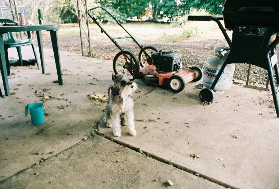 I was taking care of my parent's dog Louie. Here he is stubbornly laying in the mud, despite my calls for him to come inside. He knew I was mad at him for getting dirty.